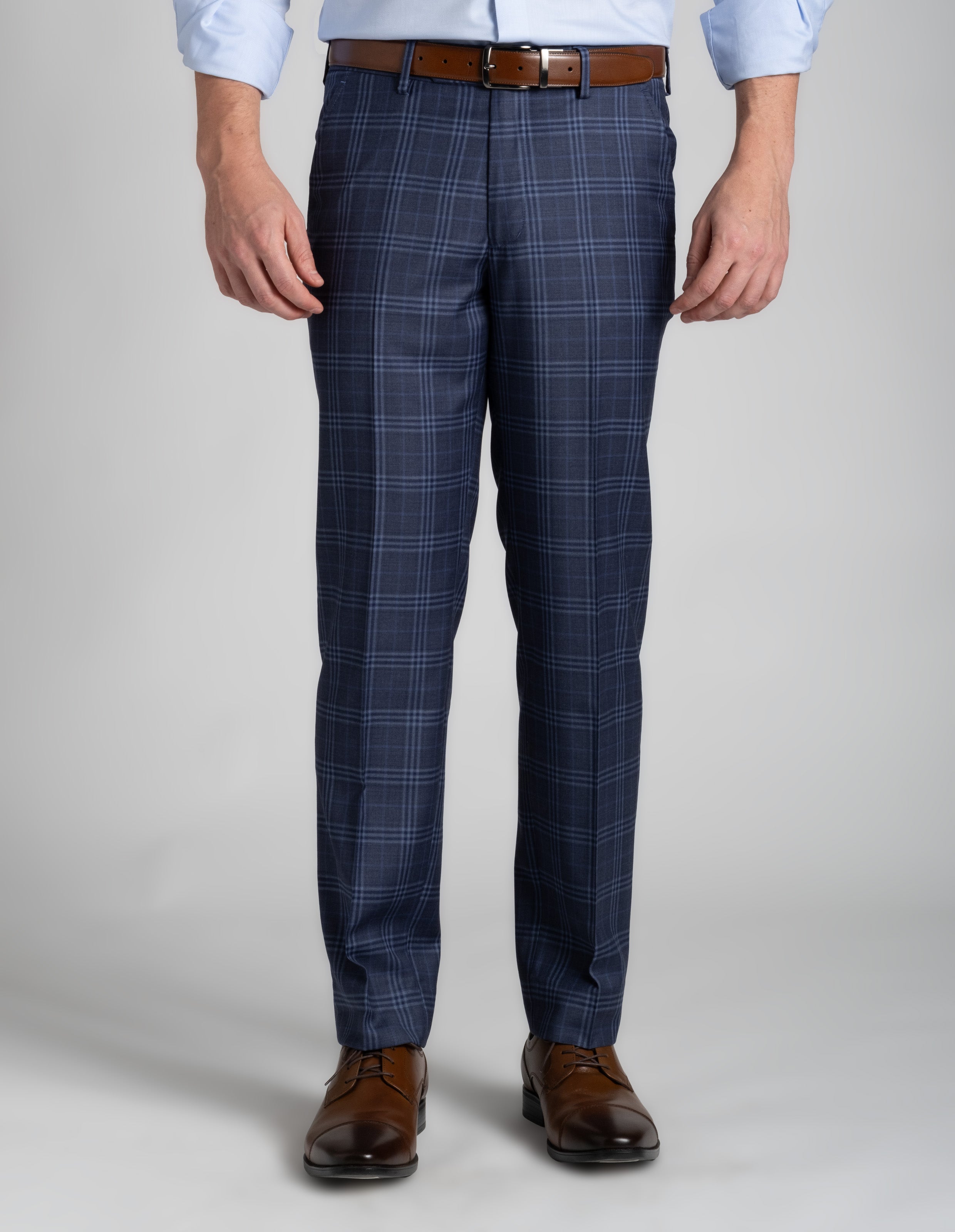Classic Wool Checks Dress Pant - Light Blue and Navy Stacked Windowpane